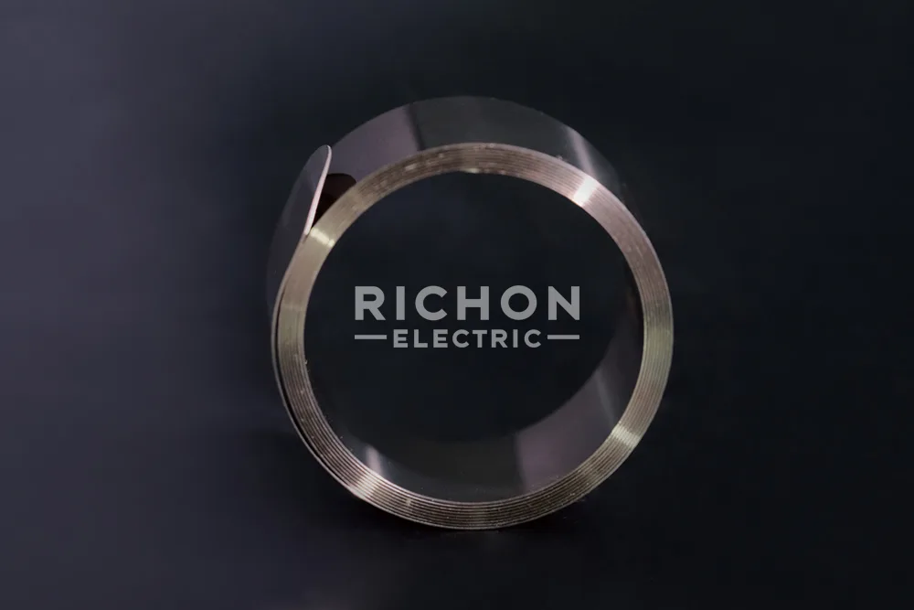 The constant force spring is typically used for solderless shield and armor connections during power cable splicing and termination. By applying uniform pressure around the cable shield or braid, the spring ensures reliable electrical contact and secure mechanical fixation.